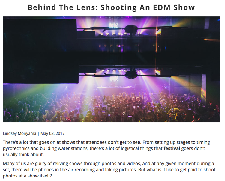 | My sister Lindsey, who currently writes for iEDM.com, recently interviewed me of what it's like to shoot an EDM show, in light of Gareth Emery's March visit to Hawaii to perform at the Republik. It was an honor to be featured, and I'm stoked that I was able to shoot one of my favorite artists of all time :) More photos from the show to come later, but be sure to check out the interview here! |